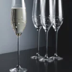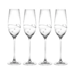 Laden with true Swarovski gems Set of 4 champagne/ flute, 7 oz. -10.5″ Height – 2.62″ Diameter Dishwasher Safe.