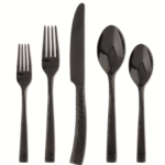 Dine in pure elegance with refined gunmetal titanium-plated Paris Hammered flatware. The exquisitely hammered texture reflects the light to create a dramatic statement to your table setting. 20-Piece set includes 4 dinner forks, 4 dinner knives, 4 dinner spoons, 4 salad forks, and 4 teaspoons. Dishwasher safe