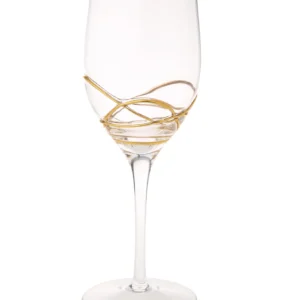 Encompassing the cup in a subtle embrace, the gold swirl design on the bottom effectively elevates this cup from bland to grand. This set is sold in a set of four to be enjoyed with guests. Cheers.