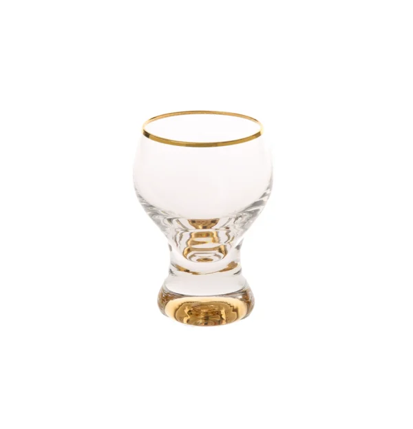 These petite liquor glasses come in a set of 6. They are completed with a gold rim and gold reflection in the stem. They are rich in design and modest in size, creating a statement of simplistic elegance. Enjoy a shot of your favorite brand in these uniquely shaped cups.